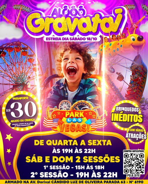 | Passaporte Park Las Vegas|Gravataí – RS | 09/11/2025 – Domingo 2ª Sessão | R$ 33,00 → Incluso taxa de compra online |